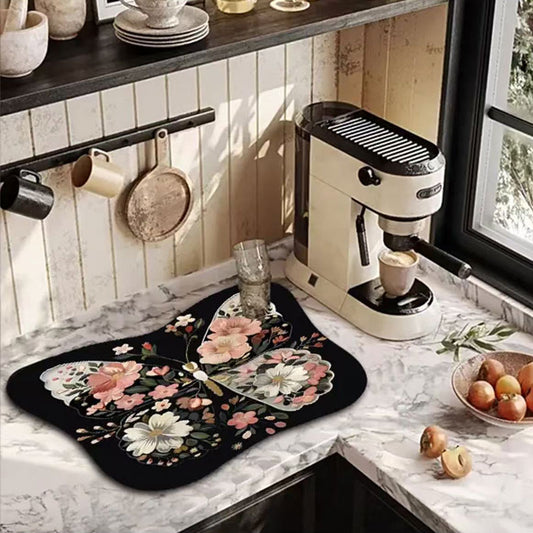 Floral Butterfly Diatomite Mat – Quick Drying & Non-Slip