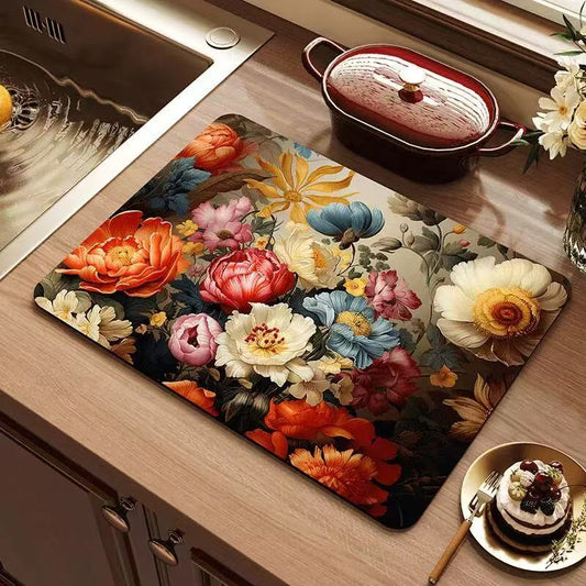 Elegant Floral Absorbent Mat – Heat-Resistant & Non-Slip