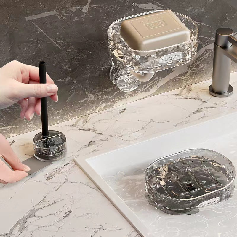 This soap holder features a powerful suction cup that securely attaches to any smooth surface, ensuring stability and reliability.
