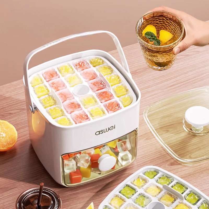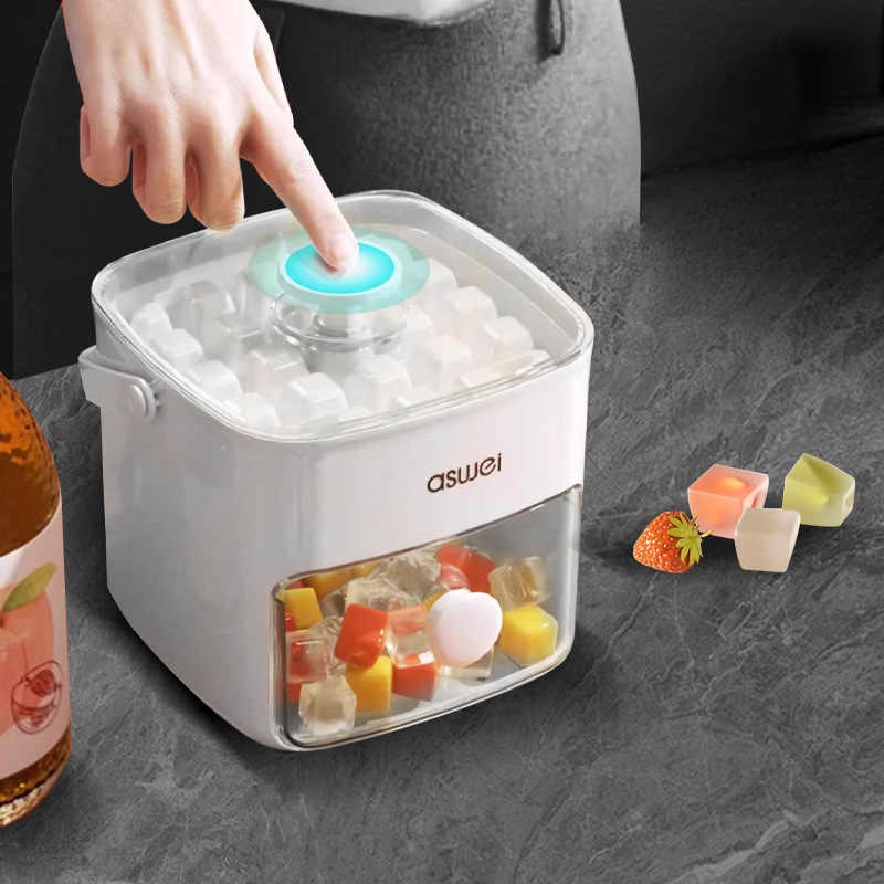 Description: Our Ice Cube Production Box features a convenient press-to-dispense mechanism, allowing you to easily access ice cubes whenever you need them. Simply press the designated area, and perfectly formed ice cubes will be dispensed, providing hassle-free ice access for your drinks or other needs.