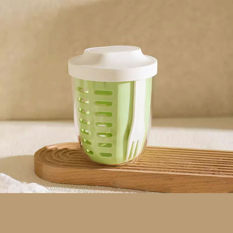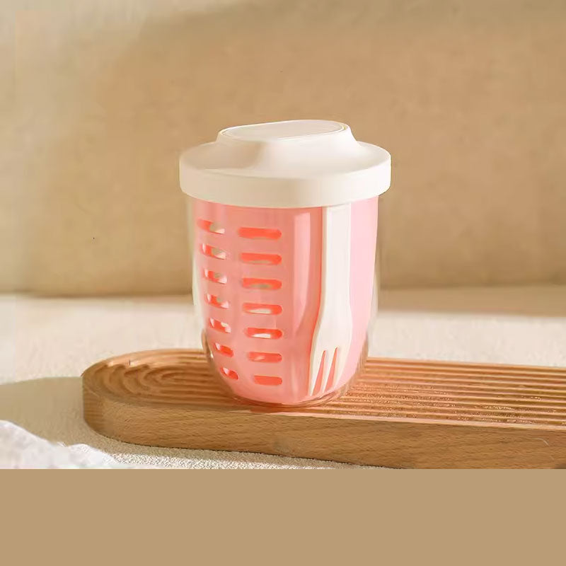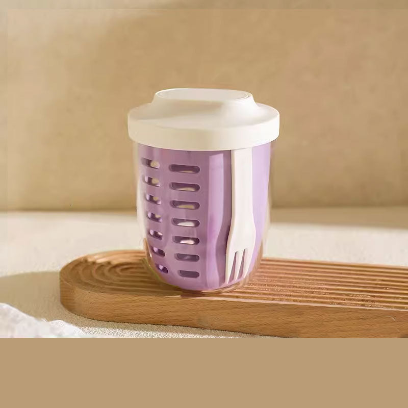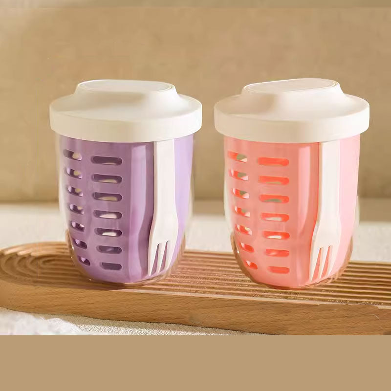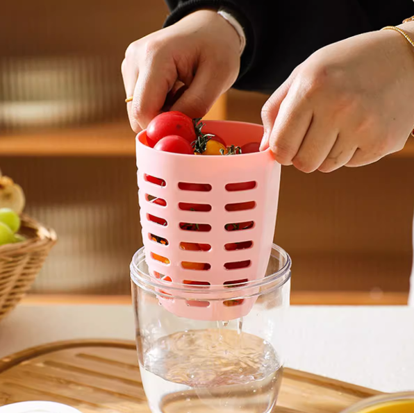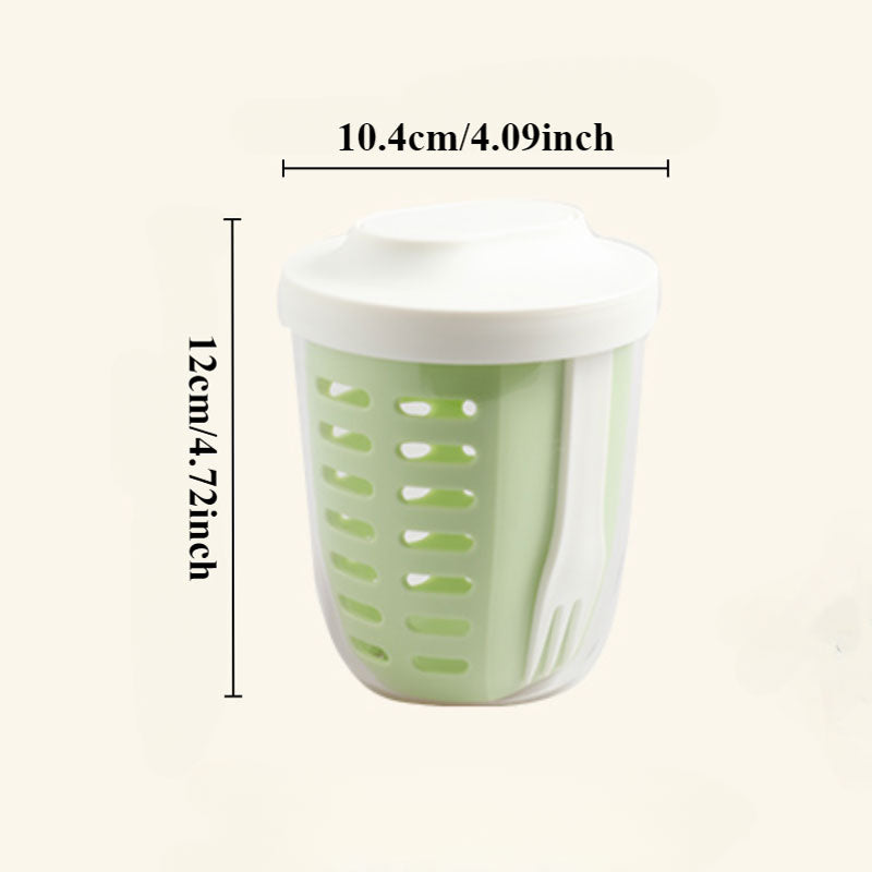 The cup features a smart dual-layer design that drains excess water, keeping your fruit fresh for longer. Perfect for ensuring your fruits and veggies stay crisp and delicious.