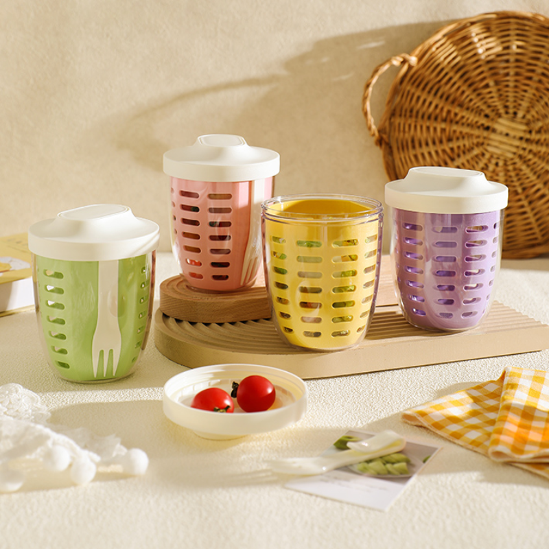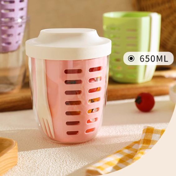 This cup offers a generous 650ml capacity, making it perfect for holding a variety of fruits and veggies. Whether it's a snack or a light meal, there's plenty of room.