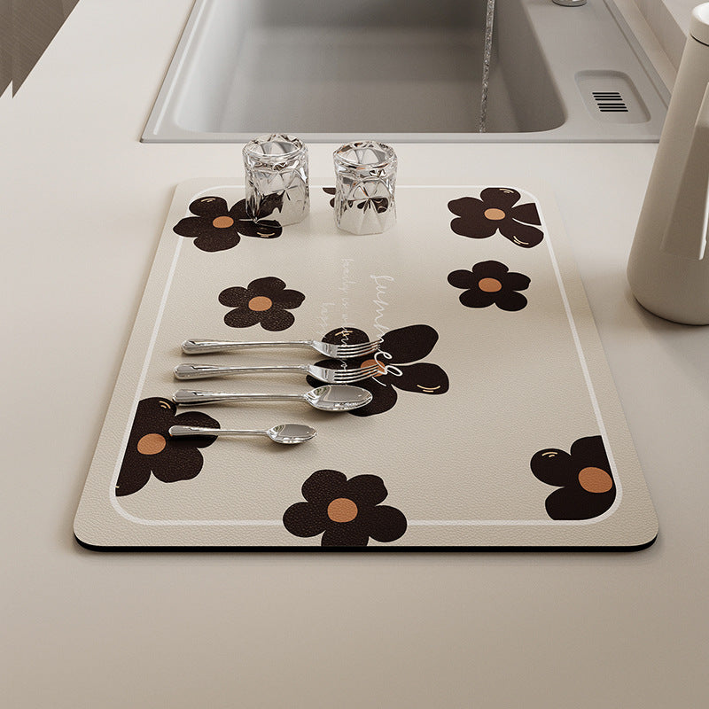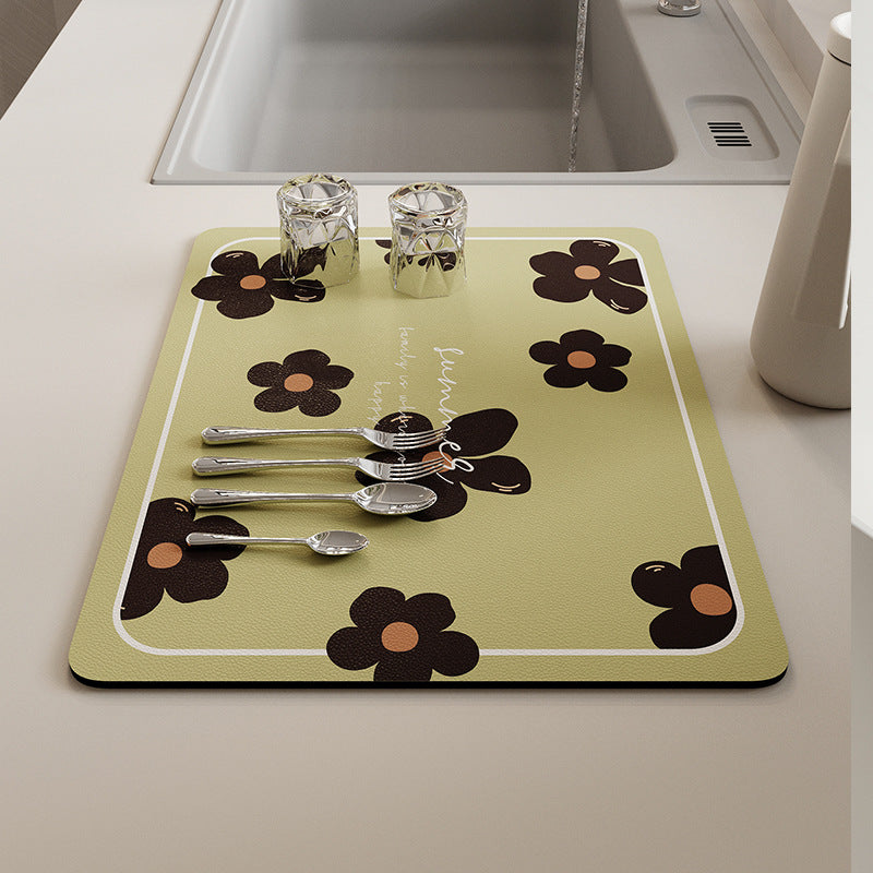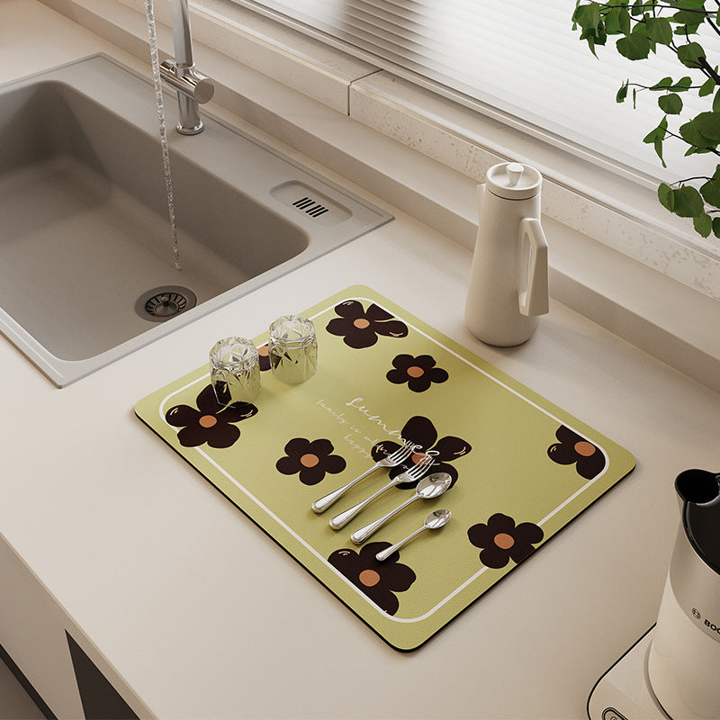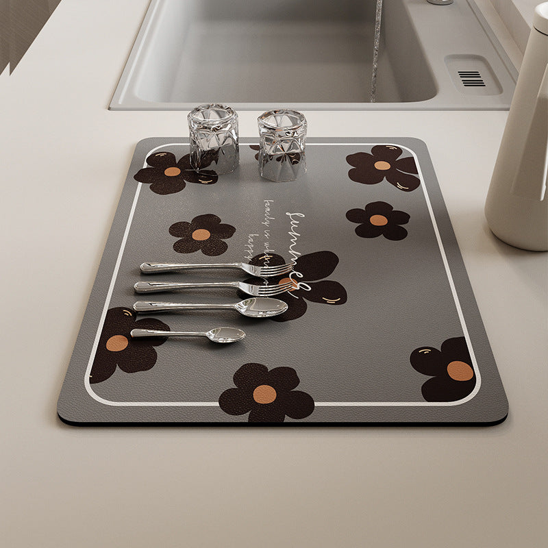 Our kitchen mat is crafted with a unique Nappe pattern technology leather that quickly absorbs and evaporates water, leaving no water stains and keeping surfaces instantly dry.