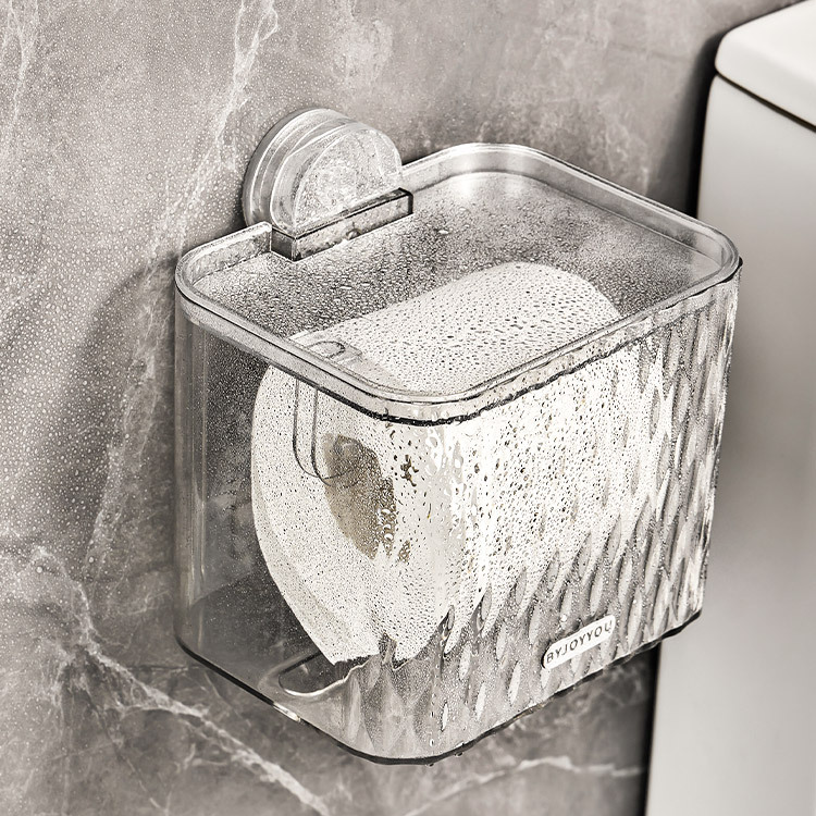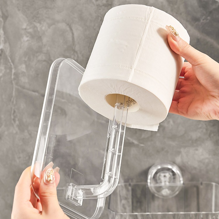 The holder features strong suction cups that can securely hold the weight of paper towel rolls or tissue boxes, providing stable support and ensuring durability.
